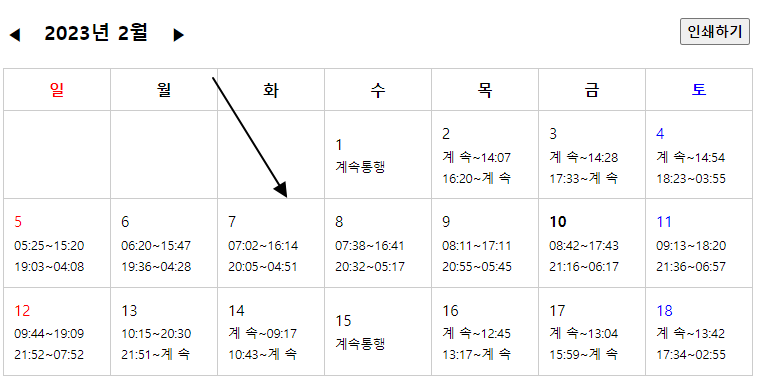 표시된 시간이 통행이 가능한 시간입니다. 제부도 물때시간표 보는 방법을 알려드리겠습니다.