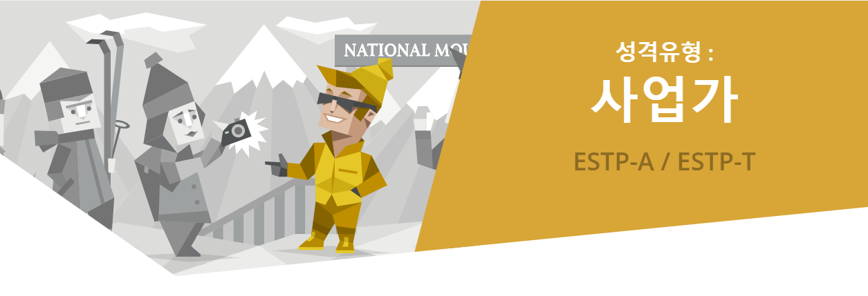 - ESTP 사업가 - 관찰력이 뛰어나고 주변에서 일어나는 모든 일에 관심이 많으며 관심받기를 원하는 유형으로 영리하며 에너지가 넘치는 사업가