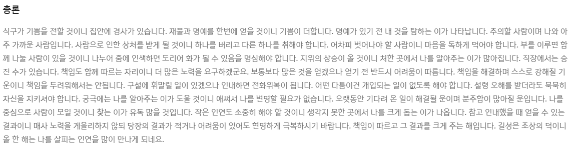 그리고 결제 없이 이용가능하기 때문에 부담 없이 즐길 수 있다는 장점도 있습니다. 게다가 다른 사람들과 공유하면서 서로의 운세를 봐주는 것도 가능하니 지인들과 같이 즐기기에도 좋을 것 같습니다.