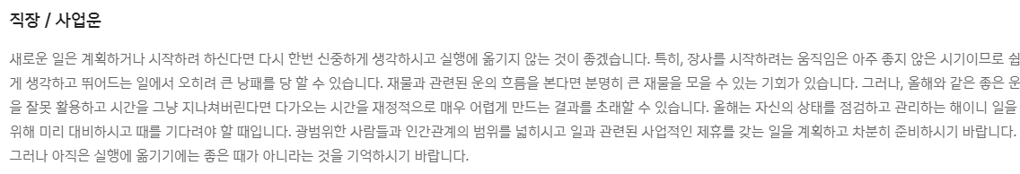 재미 삼아서 보는 운세지만 미래를 예측한다는 건 언제나 흥미로운 것 같습니다. 특히 자기 자신에게 맞는 직업 같은 경우엔 미리 알고 있으면 도움이 많이 될 것 같습니다.