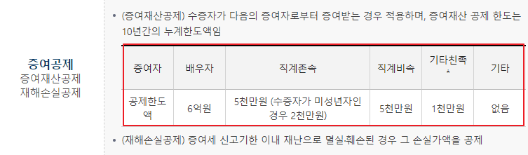 증여재산 비과세 공제 한도는 10년간 누계금액 기준입니다. 증여 후 10년이 지나면 해당 금액을 다시 비과세로 증여할 수 있다는 의미입니다.