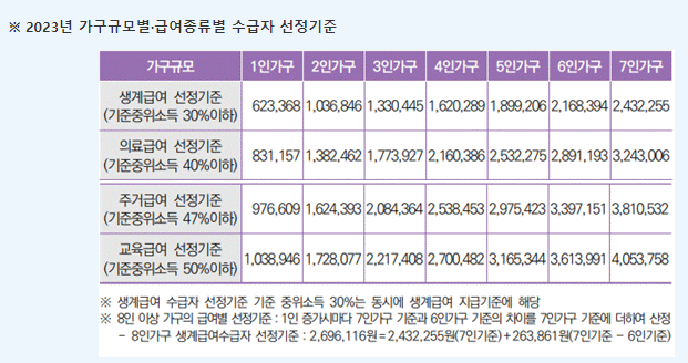 오늘은 2023 생계급여 신청자격을 알려드리겠습니다. 국민기초생활보장법에서는 급여종류별로 수급자 선정기준을 다르게 정하고 있습니다.