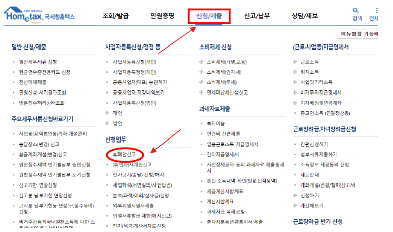폐업신고 방법 홈택스