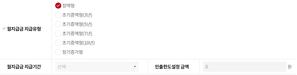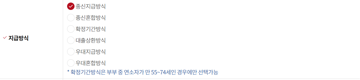 주택연금 수령액의 경우 지급방식과 월지급금 지급유형에 따라서 주택연금 수령액이 달라집니다. 그렇기 때문에 자동으로 주택연금 수령액을 계산해 볼 수 있는 '주택연금 예상연금조회'를 통해서 수령액을 확인해 보시는 게 좋습니다.