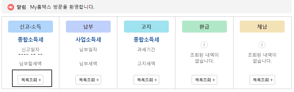 종합소득세 환급금 조회
