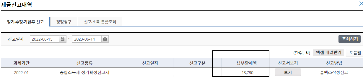 만약 조회 결과에 마이너스 (-) 금액이 표시된다면, 이는 사용자가 과도한 세금을 납부했음을 의미하며, 환급을 받을 수 있습니다.