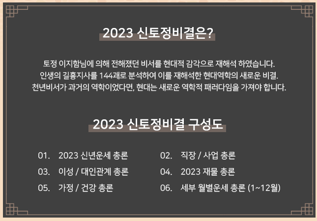 또한 2023년 재물운세, 월간운세 등 다양한 정보를 확인할 수 있습니다.