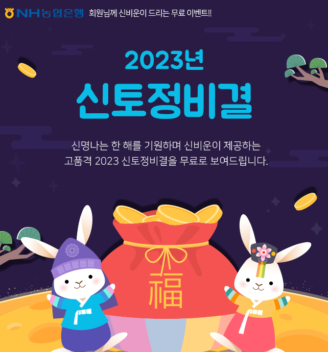농협 홈페이지에서도 별도의 회원가입을 하지 않고도 토정비결을 무료로 볼 수 있습니다. 간단하게 사주 정보만 입력하면 사주풀이를 할 수 있으며 신년운세 역시 볼 수 있습니다.