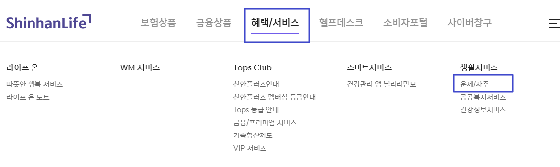 사주풀이 및 토정비결을 무료로 볼 수 있는 신한생명 운세는 정통운세, 신년운세, 평생 운세 등도 볼 수 있습니다.